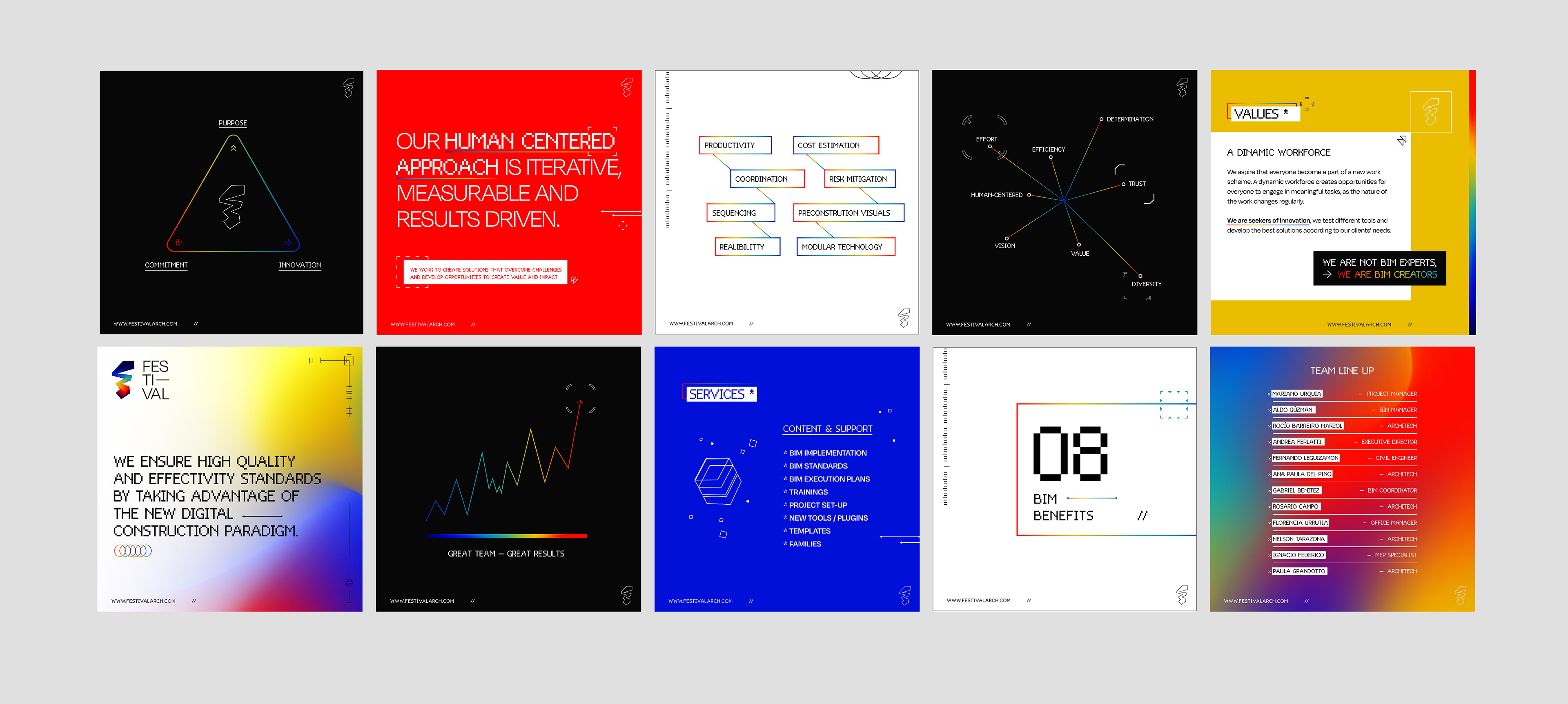 Branding + social media for Festival Arch, company which provide render & BIM services related to architecture and engineering.